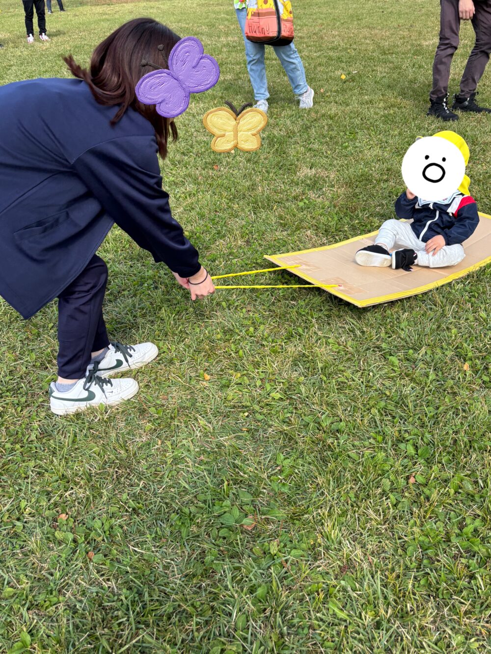 芝生のスペースでもシャボン玉や段ボールのソリなどでたくさん楽しみましたよ☆