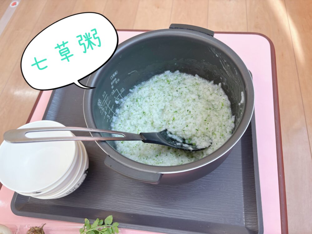 最後は調理の先生が作ってくれた七草がゆを実食!!