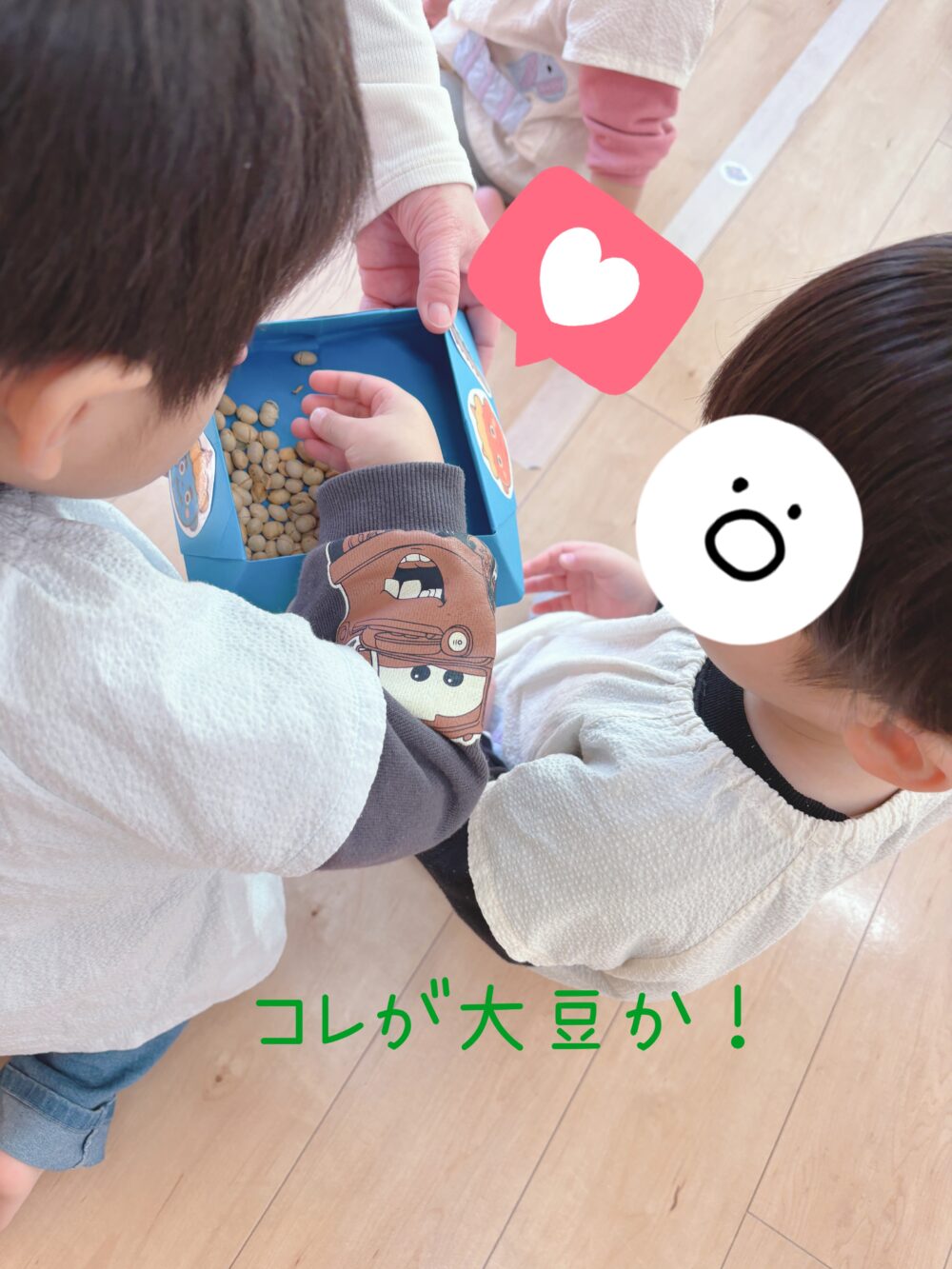 先生から由来をきいたり、大豆を実際みたり香りを楽しんだりしました。